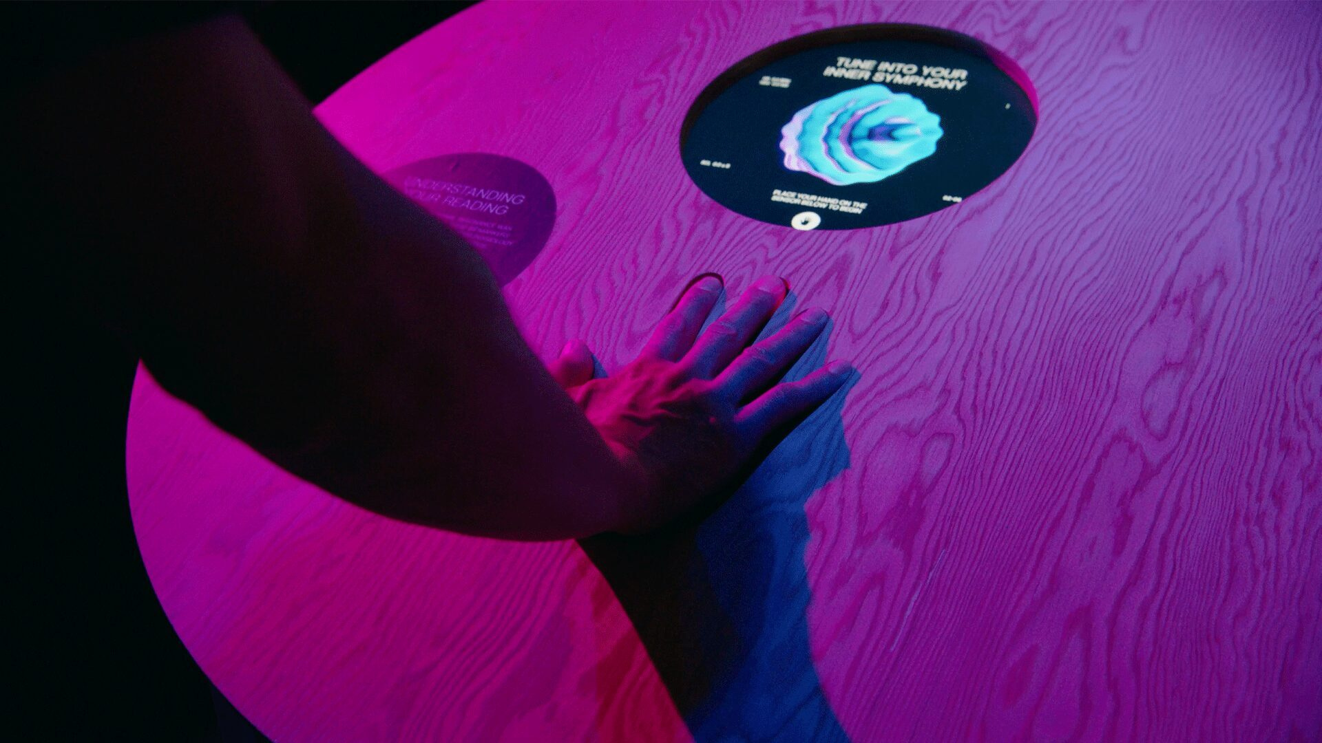 The installation Your Inner Symphony (2025) by Kinda Studios and Nexus Studios fused art, AI and biology. Visitors placed their hand on a sensor that read heart rate, variability and skin response, generating a visualisation of their internal rhythm. Each interaction changed the output, generating a living, personal data symphony.