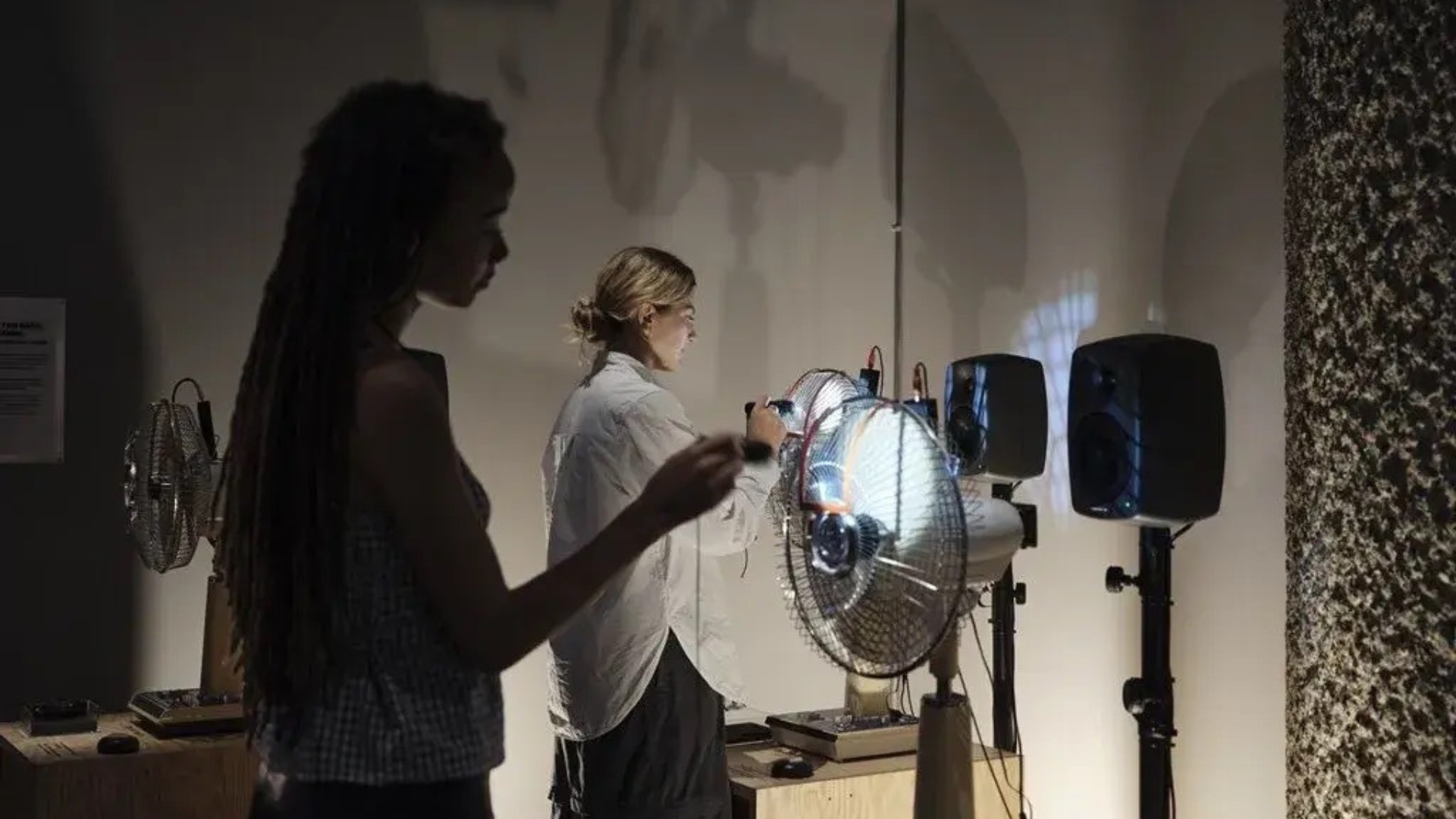 Then came the playful side of sound. In Sonic Machines Playground: Electric Fan Harp (2016-present), created by Nicole L’Huillier and Sarah Mackenzie, fans became instruments. With a torch in hand, visitors could activate sound by lighting different parts of the fans. A spontaneous symphony born from experimentation.